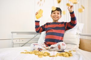 Die jungen Patientinnen und Patienten wie Konstantin hoffen auf einen wahren Goldregen beim Gold-Spende-Tag.